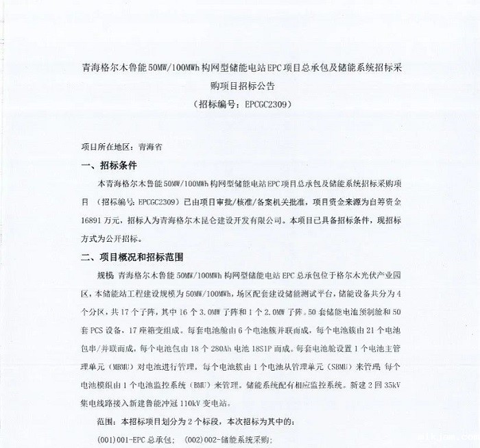taptap官方下载最新版获悉,8月4日,青海格尔木昆仑建设开发有限公司发布格尔木鲁能50MW/100MWh构网型储能电站EPC项目总承包及储能系统招标公告。 该项目位于格尔木光伏产业园区,建设规模为50MW/100MWh,场区配套建设储能测试平台。储能设备共分为4个分区,共17个子阵,其中16个3.0MW子阵和1个2.0MW子阵。50套点点网页登录预制舱和50套PCS 设备,17座箱变组成。 每套电池舱由6个电池簇并联而成,每个电池簇由21个电池包串/并联而成,每个电池包由18个280Ah电池18S1P而成。 每套电池舱设置1个电池主管理单元(SBMU)对电池进行管理,每个电池簇由1个电池从SBMU来管理,每个电池模组由1个电池监控系统(BMU)来管理。 储能系统配有相应监控系统。新建2回35kV集电线路接入新建鲁能冲冠110kV变电站。 原文如下: