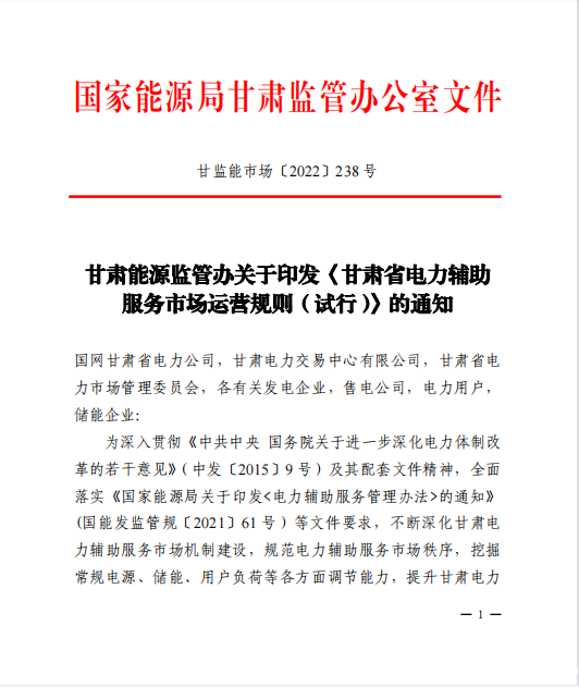 附件:甘肃能源监管办关于印发《甘肃省电力辅助服务市场运营规则(试行)》的通知 |